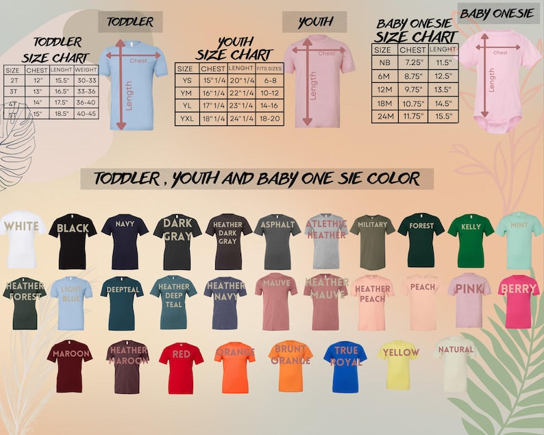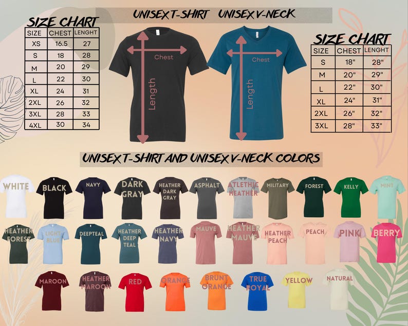 - Please check the color charts for the size and type of the t-shirt you want, not every color is available for each type of t-shirts, drop down comes automatically with every color but they are not available for each item so please make sure to check it, if you do not check the color charts the closest item will be sent to you. ATTENTION! All tops are unisex, except the tank tops. Tank tops are women sizes. The rest of the items we provide are unisex tops. Sweatshirts and Hoodies are adult unisex items, we do not have them available for kids. Please contact us if you want a sweatshirt or a hoodie for kids, we can always check the possibility.